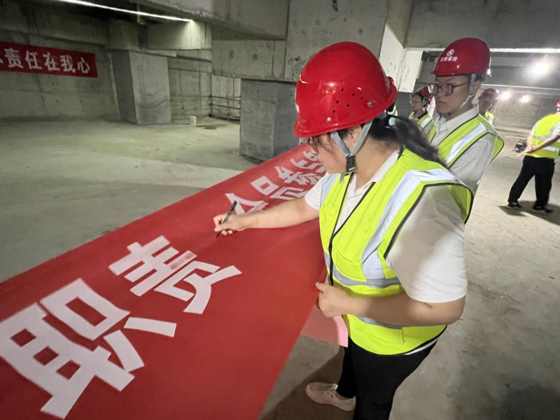 現(xiàn)場觀摩后,參加活動的全體人員進行了集體安全質(zhì)量宣誓,開展了質(zhì)量簽名活動,讓全體建設者牢固樹立質(zhì)量安全的危機意識,提高項目管理水平。