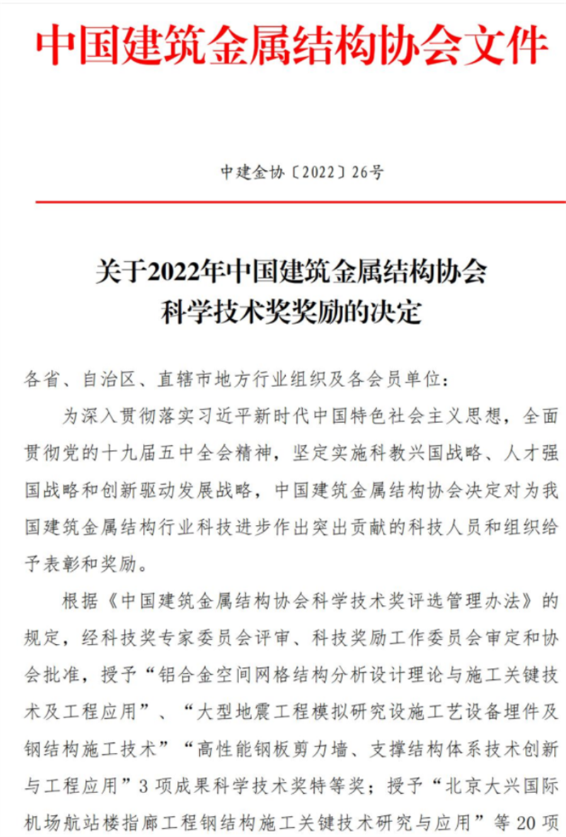 5月5日,由甘肅省建筑科學(xué)研究院(集團(tuán))有限公司巖土技術(shù)中心申報(bào)的“既有多層住宅新增電梯改造關(guān)鍵技術(shù)應(yīng)用研究與推廣”科研課題榮獲2022年度中國(guó)建筑金屬結(jié)構(gòu)協(xié)會(huì)科學(xué)技術(shù)獎(jiǎng)優(yōu)秀獎(jiǎng),表明了國(guó)內(nèi)建筑鋼結(jié)構(gòu)行業(yè)對(duì)公司創(chuàng)新能力與技術(shù)水平的肯定與認(rèn)可。
