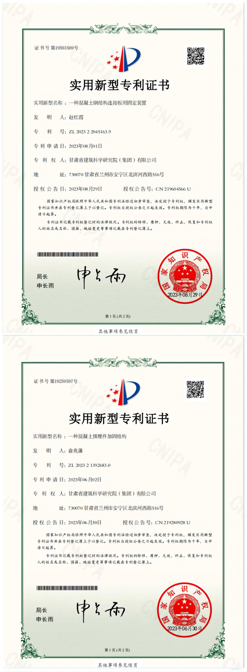 兩項實用新型專利分別涉及鋼改造技術(shù)和結(jié)構(gòu)加固預(yù)埋件連接技術(shù),有利于實現(xiàn)安裝成本的節(jié)約和提高預(yù)埋深度的準(zhǔn)確性。