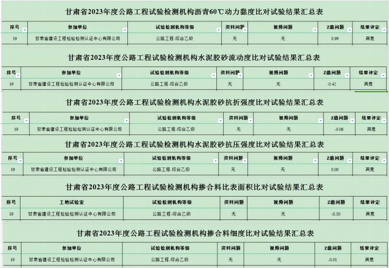 比對(duì)試驗(yàn)是通過(guò)多個(gè)試驗(yàn)室間比對(duì)來(lái)確定試驗(yàn)室檢測(cè)能力的活動(dòng),也是考察試驗(yàn)室運(yùn)行是否滿足質(zhì)量管理要求的主要手段。甘肅省建設(shè)工程檢驗(yàn)檢測(cè)認(rèn)證中心有限公司作為甘肅省公路工程綜合乙級(jí)檢測(cè)單位參加本次比對(duì)試驗(yàn),單位各級(jí)領(lǐng)導(dǎo)高度重視,市政公路專(zhuān)業(yè)事業(yè)部積極組織檢測(cè)人員參與本次公路行業(yè)比對(duì)試驗(yàn),安排檢測(cè)人員對(duì)照檢測(cè)儀器設(shè)備、檢測(cè)環(huán)境、數(shù)據(jù)分析嚴(yán)格按照操作規(guī)程及作業(yè)指導(dǎo)書(shū)要求進(jìn)行檢測(cè),并根據(jù)本次比對(duì)試驗(yàn)的視頻要求對(duì)整個(gè)試驗(yàn)過(guò)程進(jìn)行了全程錄像。甘肅省建設(shè)工程檢驗(yàn)檢測(cè)認(rèn)證中心有限公司試驗(yàn)結(jié)果Z比分?jǐn)?shù)均小于2.0,六項(xiàng)檢測(cè)參數(shù)均取得滿意結(jié)果。通過(guò)本次比對(duì)試驗(yàn)證明,甘肅省建設(shè)工程檢驗(yàn)檢測(cè)認(rèn)證中心有限公司在人員、設(shè)備、環(huán)境、試驗(yàn)方法掌握等各方面均持續(xù)保持較高的檢測(cè)技術(shù)能力,符合上級(jí)主管部門(mén)對(duì)試驗(yàn)檢測(cè)機(jī)構(gòu)持續(xù)保持檢測(cè)能力的要求。