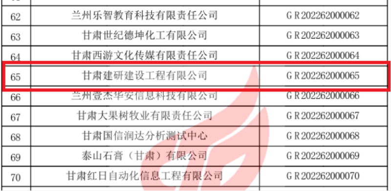 近日,國家高新技術(shù)企業(yè)認(rèn)定管理工作領(lǐng)導(dǎo)小組辦公室發(fā)布了甘肅省認(rèn)定機(jī)構(gòu)2022年認(rèn)定的第一批高新技術(shù)企業(yè)備案公告,建研建設(shè)公司位列其中,成功通過了國家高新技術(shù)企業(yè)復(fù)審。