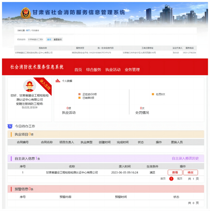 近日,經(jīng)甘肅省消防總隊審核批準(zhǔn),甘肅建科院所屬子公司甘肅省建設(shè)工程檢驗檢測認(rèn)證中心有限公司順利取得消防設(shè)施維護(hù)保養(yǎng)檢測及消防安全評估資質(zhì)。