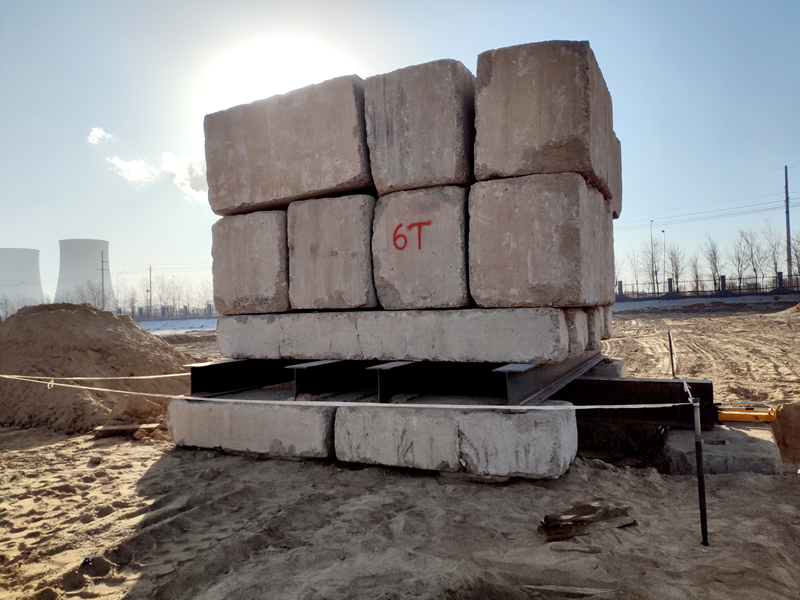 為解決工期緊張問題,工程技術(shù)人員在開展堆載試驗(yàn)時(shí)嚴(yán)格按照規(guī)范進(jìn)行的同時(shí),還盡可能地節(jié)省配重堆放時(shí)間,在零下15度的夜晚,4名工作人員頂著凜冽的寒風(fēng)依然堅(jiān)守在一線。通過與現(xiàn)場吊裝、照明、轉(zhuǎn)運(yùn)等各個(gè)環(huán)節(jié)的緊密配合,終圓滿完成現(xiàn)場檢測工作,并取得試驗(yàn)土樣回蘭。