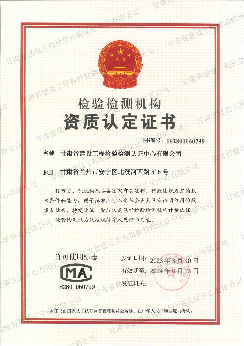 甘肅省建設工程檢驗檢測認證中心有限公司完成檢驗檢測業(yè)務分立