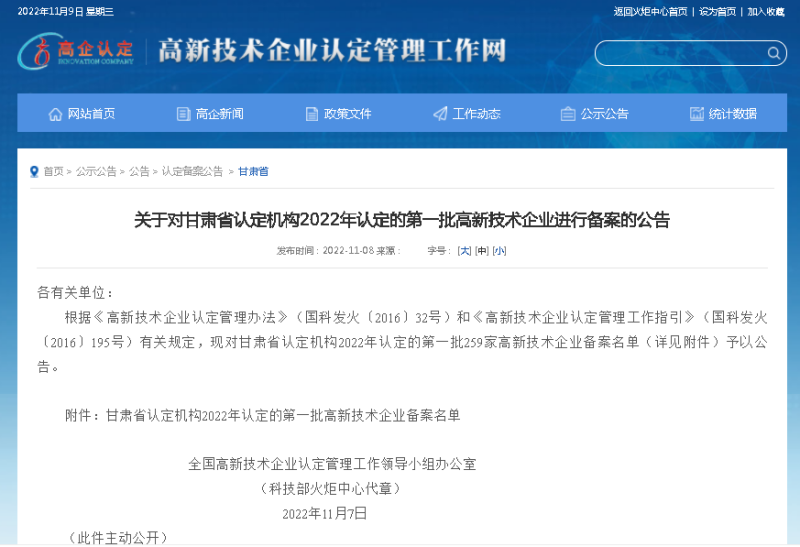 近日,高新技術(shù)企業(yè)認(rèn)定管理工作網(wǎng)發(fā)布公告,公布了甘肅省認(rèn)定機(jī)構(gòu)2022年認(rèn)定的第一批高新技術(shù)企業(yè)進(jìn)行備案名單。甘肅建科院榜上有名,順利通過(guò)高新技術(shù)企業(yè)復(fù)評(píng)。