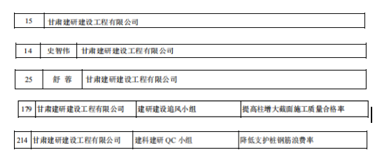 近日,從甘肅省質(zhì)量協(xié)會獲悉,建研建設(shè)公司喜獲“甘肅省質(zhì)量管理小組活動優(yōu)秀企業(yè)”稱號,建科院副總經(jīng)理、建研建設(shè)公司總經(jīng)理史智偉榮獲“甘肅省質(zhì)量管理小組活動卓越領(lǐng)導(dǎo)者”稱號,建研建設(shè)公司總工程師舒蓉榮獲“甘肅省質(zhì)量管理小組活動優(yōu)秀推進(jìn)者”稱號,公司申報的QC成果喜獲2020年度甘肅省質(zhì)量管理小組一等獎兩項(xiàng),二等獎兩項(xiàng)。