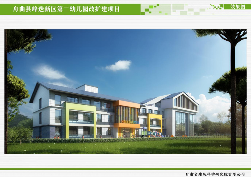 舟曲縣峰迭新區(qū)第二幼兒園項(xiàng)目工程為框架結(jié)構(gòu),總建筑面積2687.48㎡,新建消防水池及水泵房1座,新建門房1座。為保證幼兒的安全,項(xiàng)目在實(shí)施過程中采用了隔震支座,減低地震對(duì)建筑物造成的危害。項(xiàng)目建成后,將有效緩解舟曲峰迭新區(qū)幼兒入園難的問題,為周邊適齡幼兒提供優(yōu)質(zhì)教育提供環(huán)境優(yōu)美、設(shè)施齊全、功能完備的學(xué)習(xí)、生活場所。
