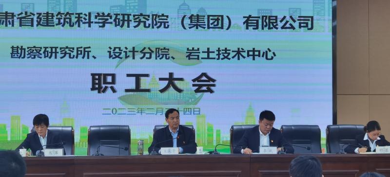 會議傳達(dá)了建科院一屆二次職代會暨生產(chǎn)動員大會會議精神,領(lǐng)學(xué)了《甘肅省建筑科學(xué)研究院(集團(tuán))有限公司2023年工作報告》,同時,總結(jié)了2022年度科技創(chuàng)新工作和生產(chǎn)經(jīng)營工作,并對2023年重點(diǎn)工作進(jìn)行了安排部署。