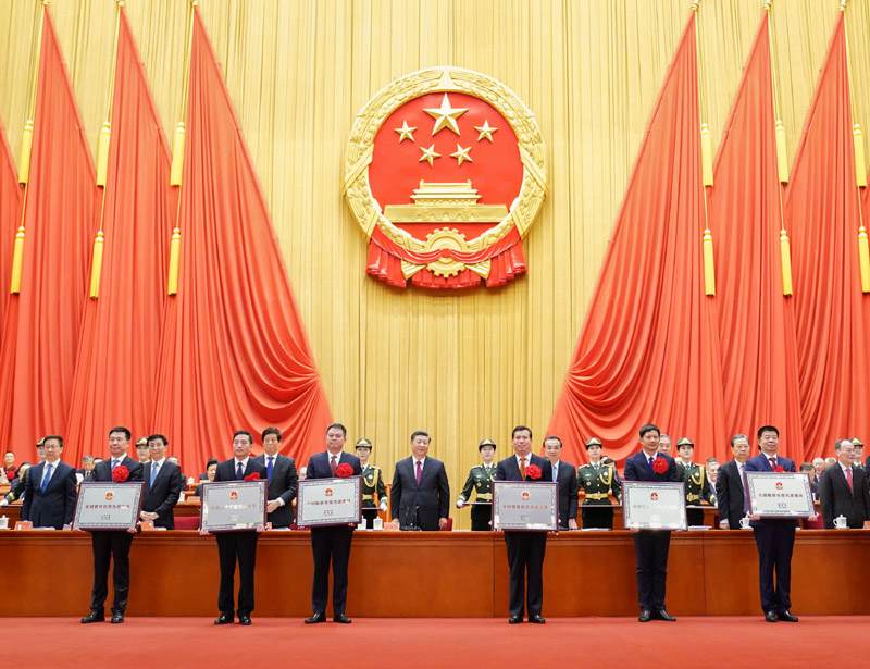 李克強主持大會,汪洋宣讀表彰決定,栗戰(zhàn)書、王滬寧、趙樂際、韓正、王岐山出席。